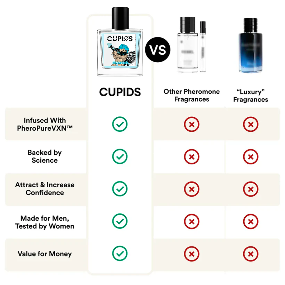 Your pheromone levels can hold you back from making a lasting impression. Cupids' formula, developed by scientists with 20+ years of experience, uses a powerful, science-backed blend to topically enhance your natural pheromones. Just a few sprays, and you'll feel more attractive and have more confidence to captivate those around you.